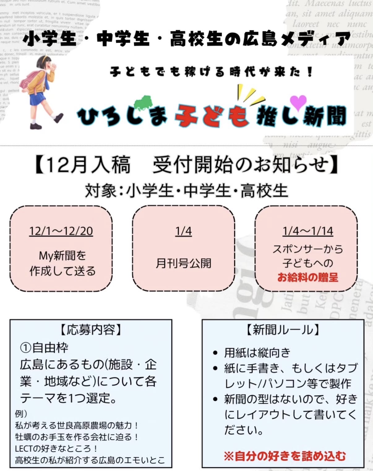【ひろしま子ども推し新聞 1月号 募集開始】